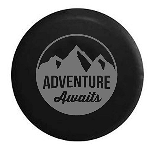 Stealth - Adventure Awaits Mountain Scene Stamp Style Spare Tire Cover OEM Vinyl Black 29 in