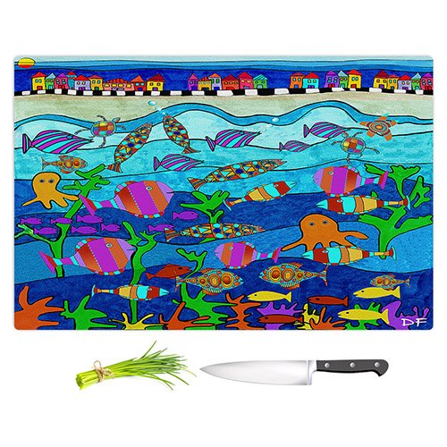 DiaNoche Designs CB-DoraFicherLIttleHousesBytheSea2 Dora Ficher-Little Houses by Cutting Boards from Sea, Large 15" x 11"