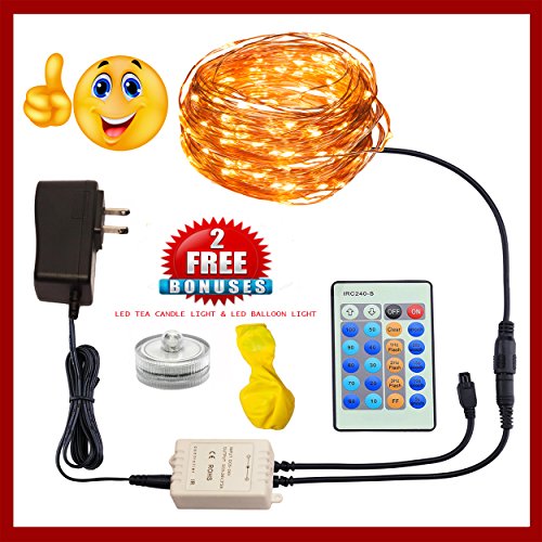 REMZES Starry String Lights: 33 Foot Copper Wire Strand with 100 LED Lights, Remote, AC Adapter, plus LED Tea Candle and LED Balloon Light.100%.