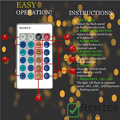 - SATISFACTION GUARANTEE: We strive to provide you with the highest quality product and the best customer experience possible, so if you're not entirely satisfied, please contact us to rectify the issue quickly; order your REMZES LED STRING LIGHTS that comes with a Remote Control, AC Adapter, LED Tea Candle Light, and LED Balloon Light, brighten your life with these starry lights.THE REMZES LED STRING LIGHTS SET COMES WITH A 100% MONEY-BACK LIFETIME GUARANTEE. TRY IT RISK FREE TODAY!!!