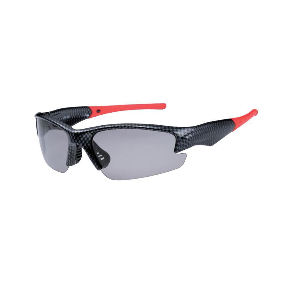 | 仕様 | UVカット率:99% 偏光度:99%以上 ブルー光カット率:約70%(JIS規格:JIS T 7333:2005に基づくカット率) 可視光線透過率:30~10% フレームカラー:カーボンブラック/レッド レンズカラー:調光スモーク |