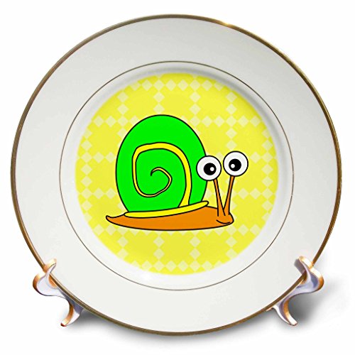 3dRose cp_6290_1 Cute Orange, Yellow and Green Snail Design Porcelain Plate, 8-Inch