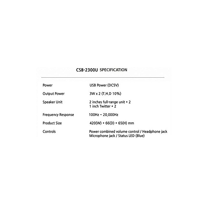 2.0Ch / PC용 / USB전원 / 정격전압 : DC 5V / 정격출력:6W