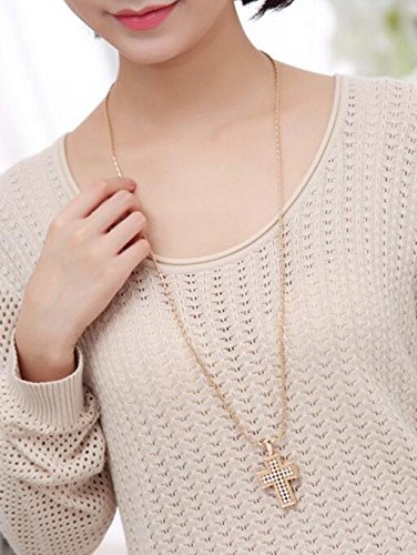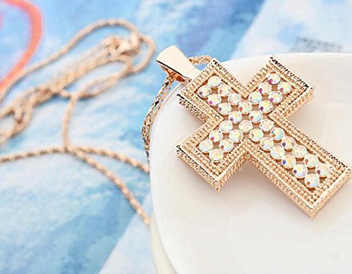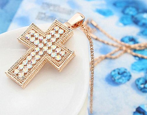 -. Title : Sojewe Women Crosses Long Necklace Colorful-White Crystal on Pendant Gold Plated Fashion Accessories Gift for Wife Girlfriend