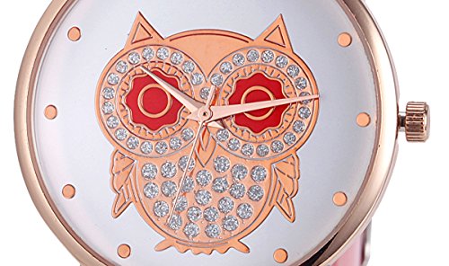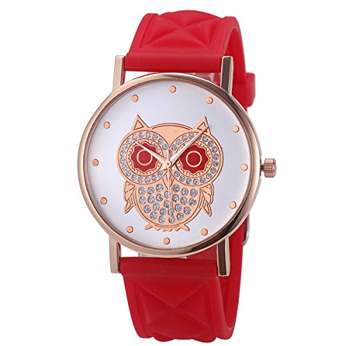 Wal-Joy Women's Rose Gold Owl Dial Design Grid Silicone Watch Red