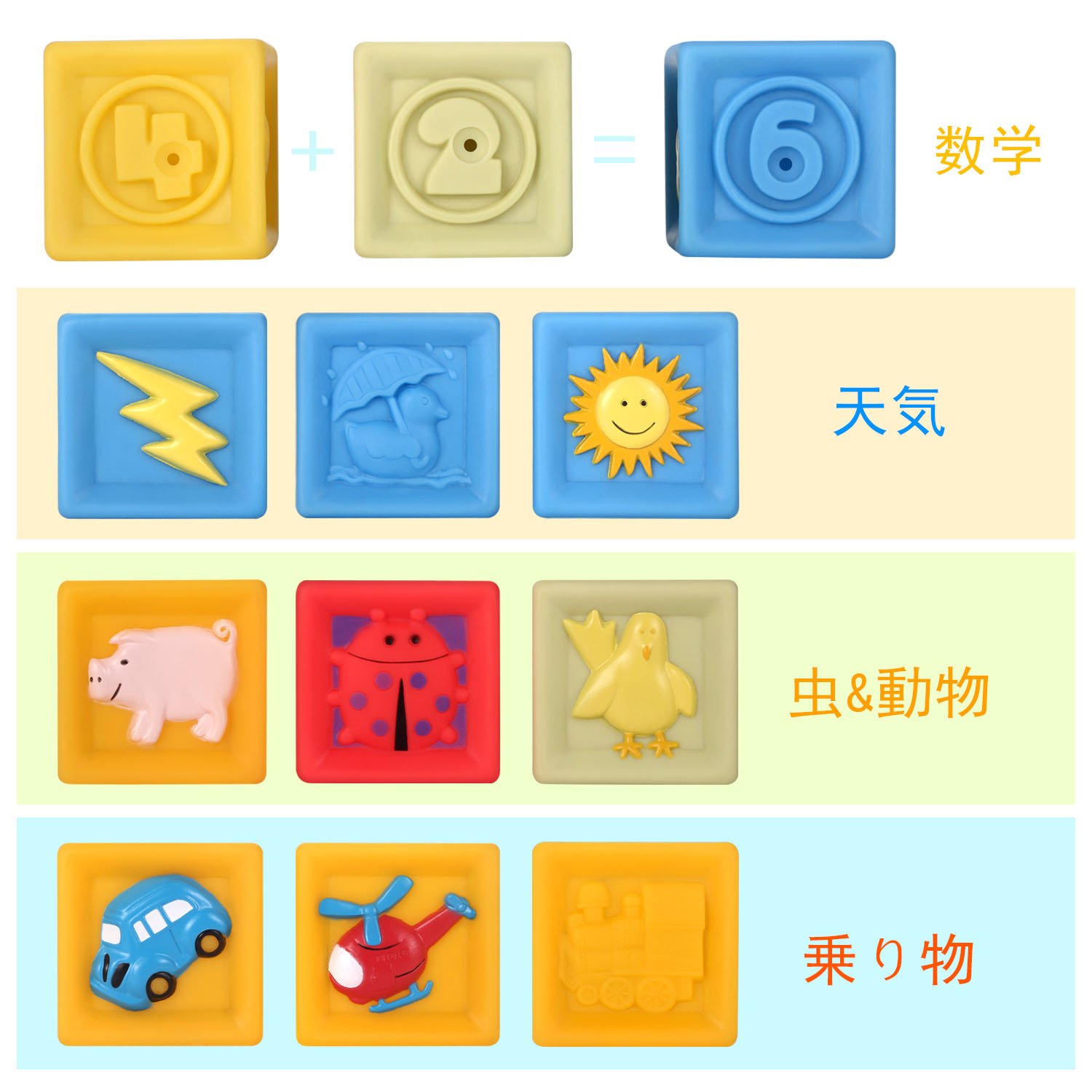 It is fun to play building blocks with sound clipper, cute pattern, various unique shapes.