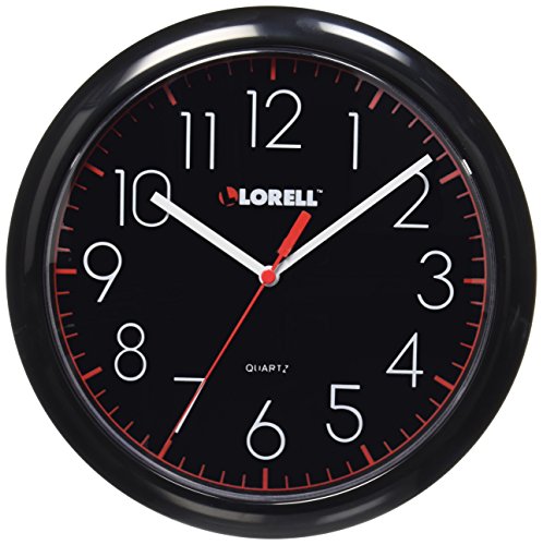 -. Title : Lorell Wall Clock with Arabic Numerals, 10-Inch, Black Frame/Black Face