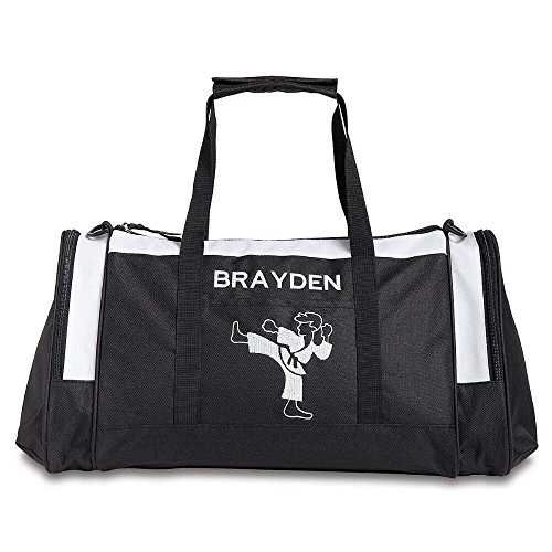 -. Brand : Lillian Vernon -. Color : Black -. Department : boys -. Feature : Lillian Vernon Exclusive. / They'll do a roundhouse kick over this bag! Polyester duffel with two end zippered pockets and a front pocket stands up to rugged use. / Padded-close handles and shoulder strap. Surface clean. / 18" Small 9" x 10" x 18" W / Specify name up to 12 characters. -. Model : 808620 -. MPN : 808620 -. PartNumber : 808620 -. ProductGroup : Apparel -. ProductTypeName : LUGGAGE -. Size : Small -. Title : Martial Arts Kids Personalized Small Duffel Bag by Lillian Vernon (9" x 10" x 18"W)