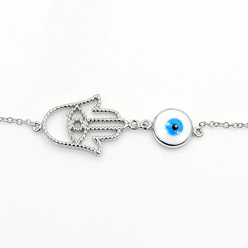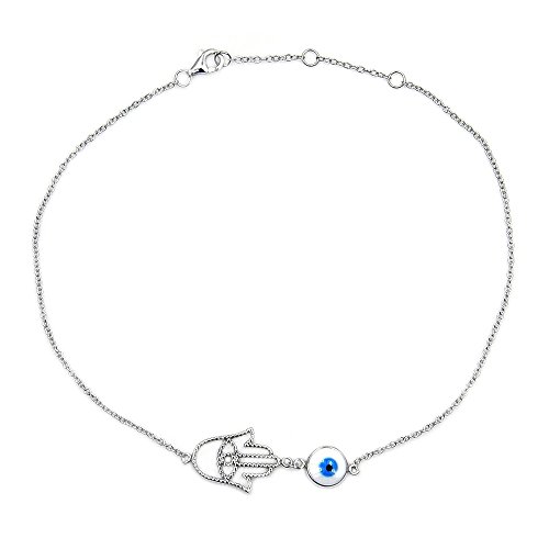 -. Binding : Jewelry -. Brand : The Silver Plaza -. Department : womens -. Feature : Hamsa Hand, Evil Eye (Glass) Anklet; Adjustable from 9.25"-10.75" long / .925 Sterling Silver; Weight: 2.4 grams / Each item comes shipped in jewelry box. / You are looking at a one of a kind piece, the pictured jewelry will be the same exact piece you'll receive. / Each item is designed and handcrafted by our artisans. -. ProductGroup : Jewelry -. ProductTypeName : FASHIONNECKLACEBRACELETANKLET -. Title : Sterling Silver Hamsa Hand, Evil Eye Anklet
