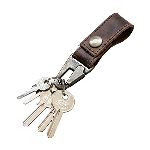 LOOPS AROUND YOUR BELT OR BELT LOOP HOLE FOR EASY ACCESS: The heavy duty Brass Metal clasp provides enough space to attach a large set of keys, and the Full Grain Leather loop can fit around most belts (comfortably fits a 1.5 inch width belt), or even your belt’s loop hole so that you can carry your house keys, work keys, car keys and have them all easy to reach and no more uncomfortable, bulky weight of your keys in your pockets.