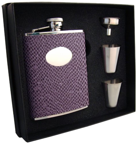 - The flask found this gift set features a purple leatherette with a beautiful snakeskin design