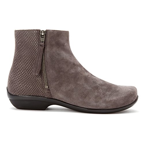 Premium leather uppers in a classic ankle boot silhouette. Zipper closure with tab offers an easy on and off. Smooth synthetic linings. Features a latex foam in the forefoot for added flexibility and support. Removable, contoured PU footbed with memory foam for added comfort. Lightweight polyurethane outsole with beveled heel for greater stability at impact. Slip-resistant and lightweight rubber outsole. Imported.