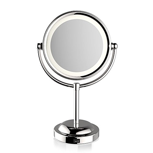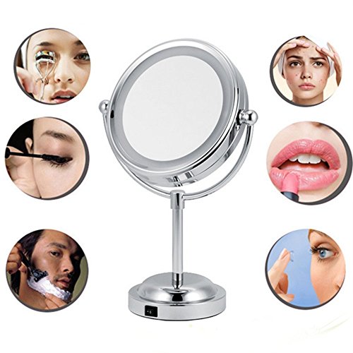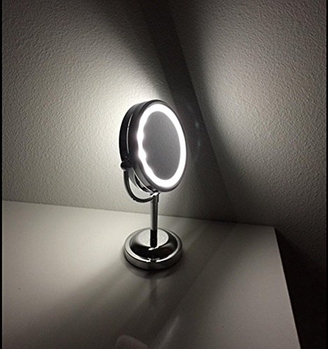 -. Feature : TOP Quality & Long lasting: Made from extra thicken ABS plastic with UV coating, nice looking and resistance to scratch, chemicals, heat, finger P.R.Ints, and etc. / Magnification Spot Mirror: Make sure every detail of your hair and makeup are in place, works best for putting eyeliner, mascara, eyebrows, contact lens, etc. Show more beautiful. / Powered by 4x AA batteries (not included), controlled by touch sensor switch on the mirror, turning LED lights on/off whenever you want. Also it could be a night light, bring you midnight convenience where you need it when you need it. Keep you safe at night. / Eye Protection: Benefit from Led warm light bulb with white light interval designed that reflects the light sideways to minimize glare and eyestrain. Large enough to be used for makeup, grooming, shaving, etc.Classic Hollywood look, elegantly design and attractive white finish will match any home d¨¦cor. 100% MONEY BACK GUARANTEE!