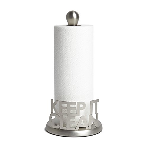- Feature : Keep It Clean paper towel holder by Umbra / Made of metal / Holds one paper towel roll, aids in a one hand tear / Measures 6-1/2 inches in diameter by 13-3/4 inches tall / Designed by Jordan Murphy
