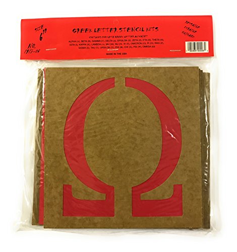 Reusable Greek Letter Stencil kits that includes all 24 Greek Letters. The kits are available in 2 Inch, 3 Inch, 4 Inch, 5 Inch and 6 Inch sizes. Stencils can be used on various surfaces: wood, paper, fabric brick, etc. Works great for scrap booking, posters and other arts and crafts projects. • Kit contains all 24 letters of the Greek Alphabet • Directions for use are printed on the back of the package • Each stencil measures 4 x 4 Inch and each letter is approximately 3 Inch tall • Use to decorate any surface: walls, wood, fabric, etc. • Easy to use; professional results • Made of durable reusable oil board • Product PROUDLY Made in the USA