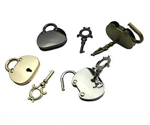 Hyamass 4pcs Mix Color Vintage Antique Style Mini Cat Shape Archaize Padlocks Key Lock with Skeleton Keys