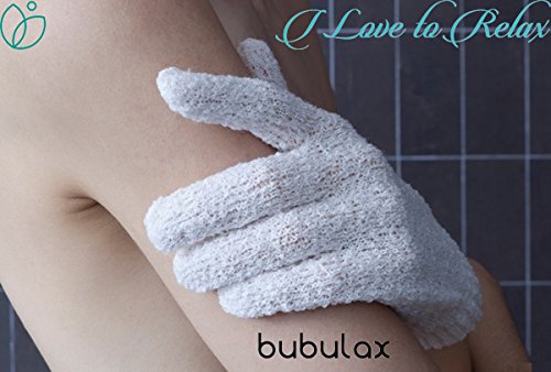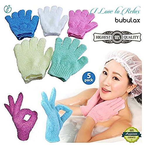 Exfoliating Gloves for Body by Bubulax 5 Pairs Bulk - 10 Gloves, Bath Gloves, 1 White Glove Set, Cellulite Scrubber, Shower Gloves, Reduce Acne Scars, Exfoliator Glove Men and Women, Exfoliate at Home