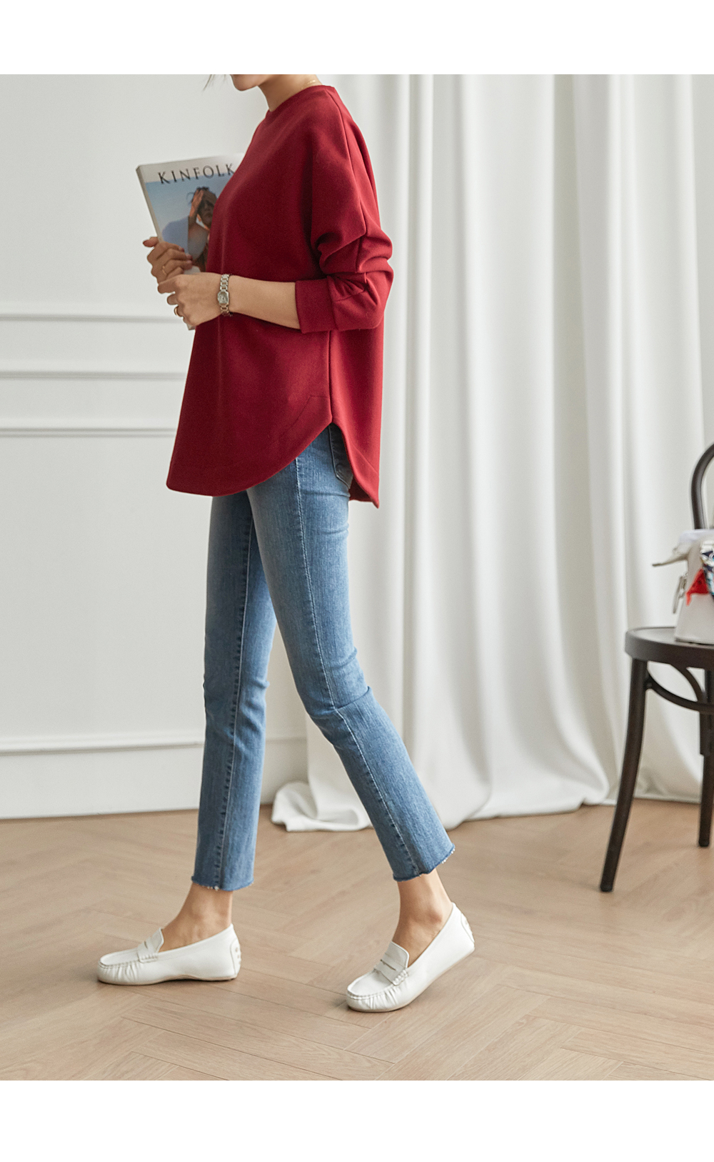 丸めた裾が自然に横のラインをよりスリムに保持くれ。 そのためか、マンツーマンだ 編ながらも女性らしさが感じられて 、気軽にどこにでもマッチして、様々な雰囲気で着れるんです。 また、体型カバーが完全して 大きくたるみが目立っていなくて良かったです^^