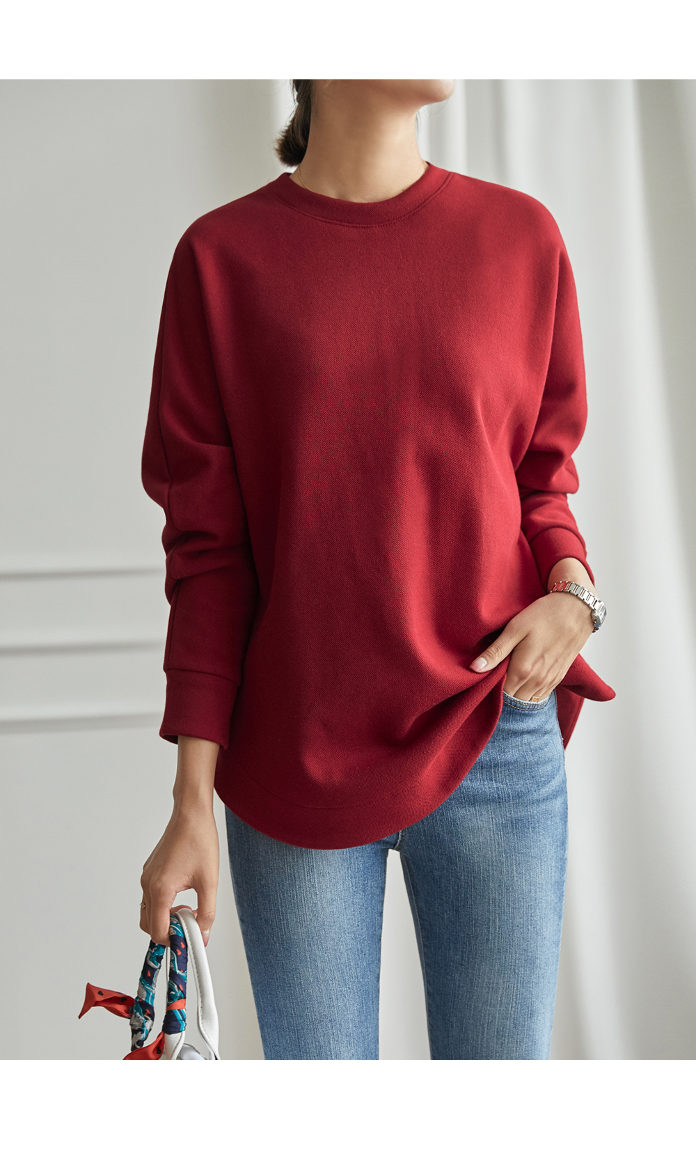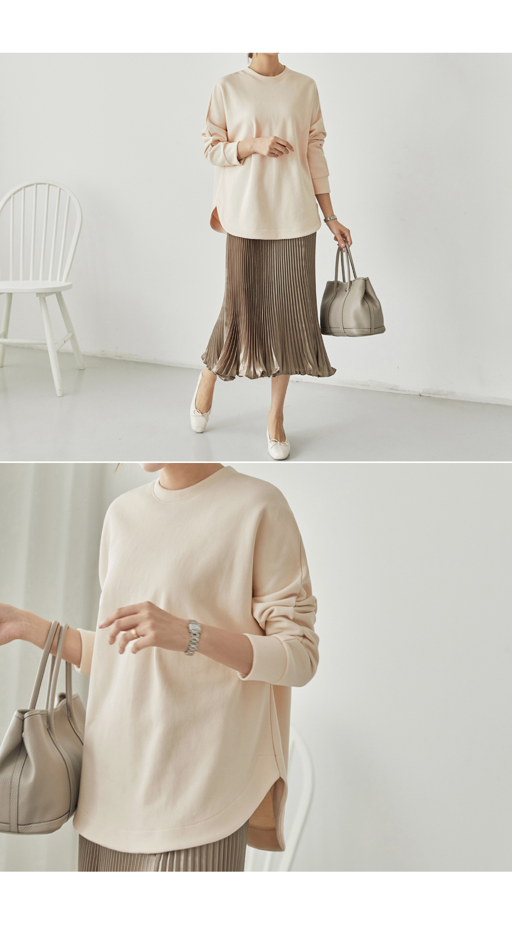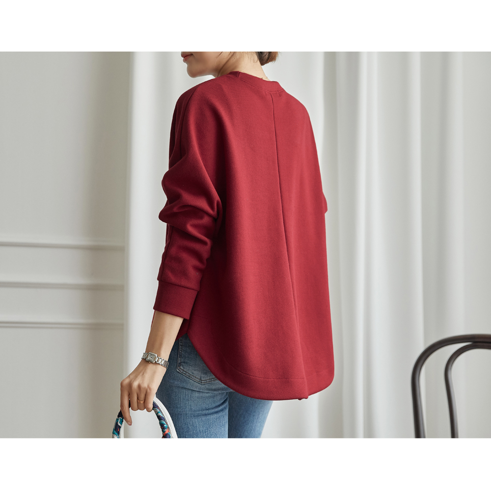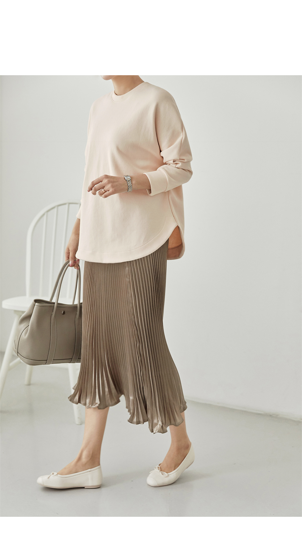 無地デザインですが、ラウンドされた裾に センスあるスタイリングが可能なアイテムです。