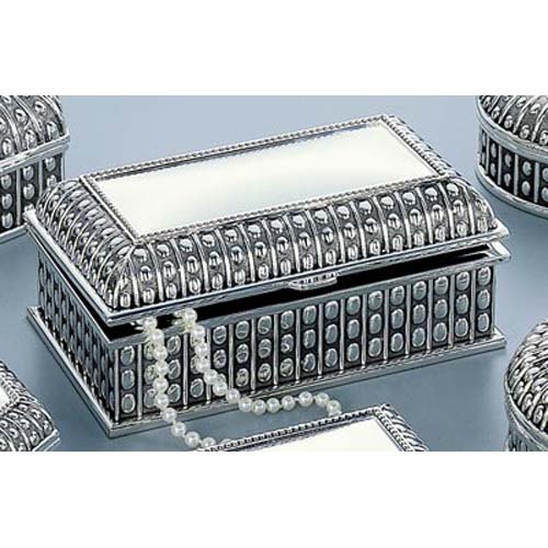 -. Title : 7" Beaded Antique Rectangular Silver Plated Hinged Jewelry Box