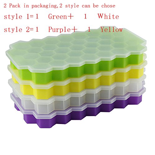 2 Pack Silicone Ice Cube Trays with Lid with 37 Ice Cubes Molds?DIY Creative Silicone Honeycomb Ice Tray Fruit Ice Cube Maker Fodant Moulds Freeze Mould Bar Jelly Chocolate Mold
