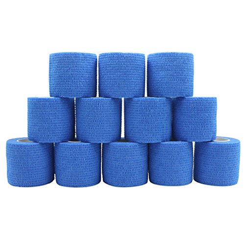 COMOmed Self Adherent Cohesive Wrap First Aid Bandages 2 Inches X 5 Yards 12 Count for Sprain Swelling and Sorenes (Blue)