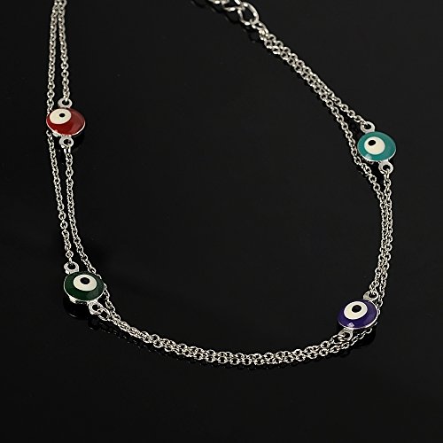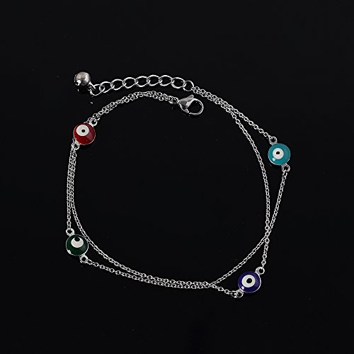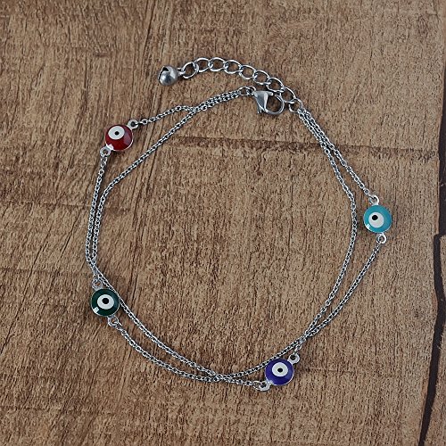 -. Title : Bala Silver Tone Titanium Double Layer Evil Eye Bead Chain Anklets 22cm+5cm Extral
