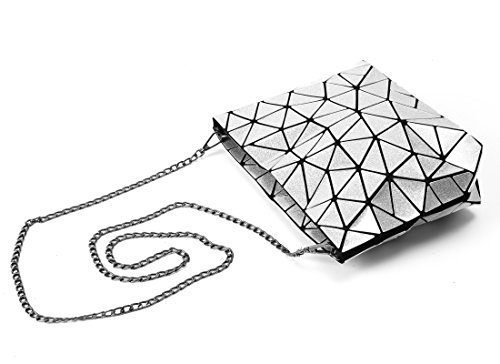 KAISIBO Fashion Geometric bags Chain cross body Shoulder Bag PU leather clutch purses for women (White)