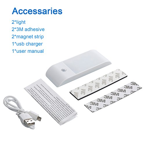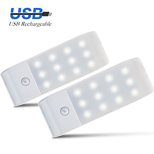 Motion Sensor Closet Light Rechargeable LED Wall Sconce Night Light, Stick-on Anywhere Closet Stair Lights for Hallway, Bathroom, Stairs, Garage etc(White- Pack of 2)