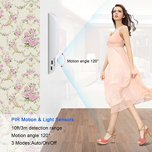 - PIR Motion & Light Sensor: Auto-on within 10 feet, auto-off after 15 seconds of no motion detected. AUTO/ON/OFF 3 light modes, with auto mode, the closet light ON motion sensored in darkness. Besides, you can turn on the modes in on/off directly if needed.
