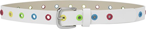Stylischer Gurtel fur Kinder mit knalligen bunten Oesen als Gurtellocher. Damit wird jede Hose zu einem echten Highlight:-) Der Gurtel hat eine Metallschnalle mit Dornschliesse und ist ca. 25 mm breit. Erhaltlich in den Grossen 55, 60, 65, 70 und 75 cm.
