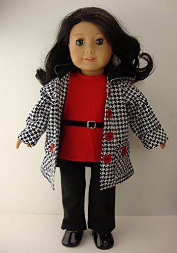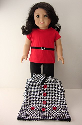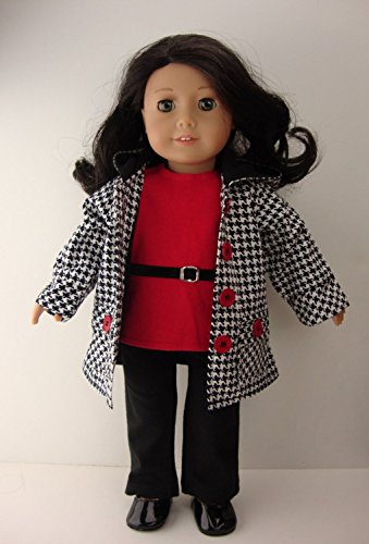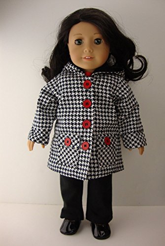 3 piece Pant Suit- Red Shirt Black Pants and Amazing Black and White Patterned Coat Made to Fit the American Girl Dolls Shoes Sold Separately