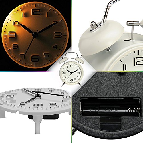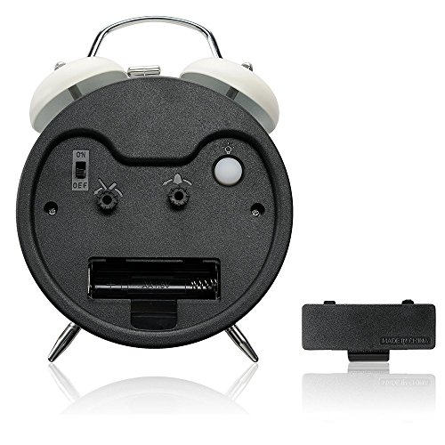 Studio : Konigswerk Publisher : Konigswerk Binding : Kitchen Product Description Features Quartz analog twin bell alarm Clock Super loud alarm sound for heavy sleepers, easy setting perfect for kids and seniors Nightlight Design Non-ticking Specifications: Type: Twin Bell Alarm Clock Function: Alarm Nightlight: Press light button Movement: Smooth Sweeping Quartz Powered by: 1x AA battery (not included) Product Dimensions: 11.5 x 5.5 x 15.5cm Package includes: 1 x 4" Twin Bell Alarm Clock Noted: 1. The two buttons to set time and alarm are designed that way. Please don't mistake the special design for the sign that they're broken or of poor quality. 2. Please use 1 AA carbon zinc battery only (alkaline battery or rechargeable battery which may have influence on the life span of clock movement, as well as the accuracy of the time). 3. There are slight difference between the picture and the real item caused by light brightness. 0