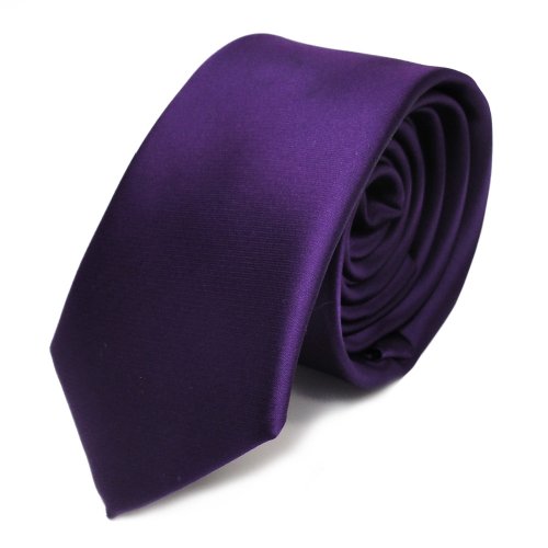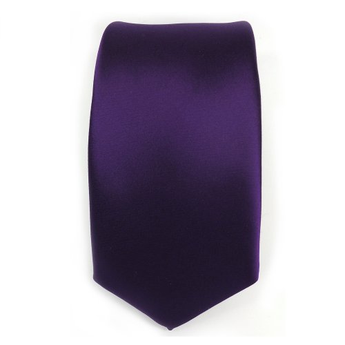 TigerTie Schmale Satin Krawatte dunkles lila violett uni Polyester