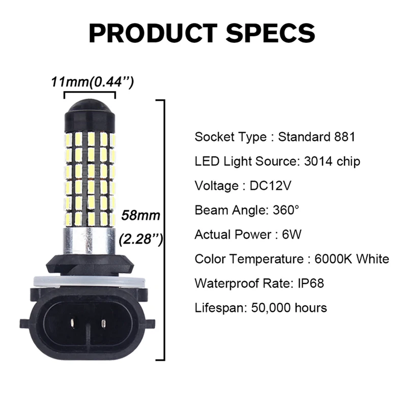 Car Fog light bulb Luminous Flux:About 780Lm per bulb