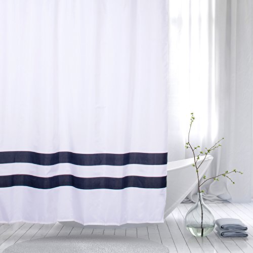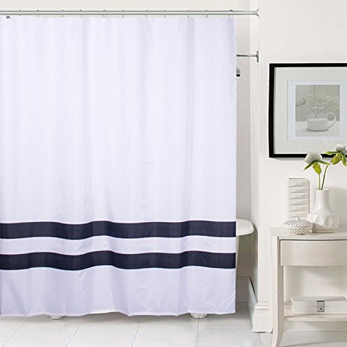 HOMESPON Home Deco Striped Shower Curtain Polyester Fabric White with Black Stripes Hooks, Mildew Mold Resistant Waterproof, Non-Toxic No Odor Eco-Friendly, Stripes 72X80 inch