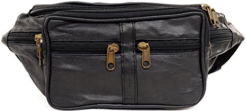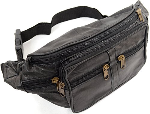 Product Description Unisex Leather Fanny Pack / Waist Bag / Money Belt with Multiple Pockets. Sizing: Length 30cm, Height 15cm, Depth 3cm. Max Waist Size - 115cm / 45" approx. 1 Main Zipped Compartment. 3 Zipped Front Pockets. 1 Zipped Pocket on Each Side. 1 Zipped Back Pocket. 1 Adjustable Waist Strap with Plastic Buckle. 0