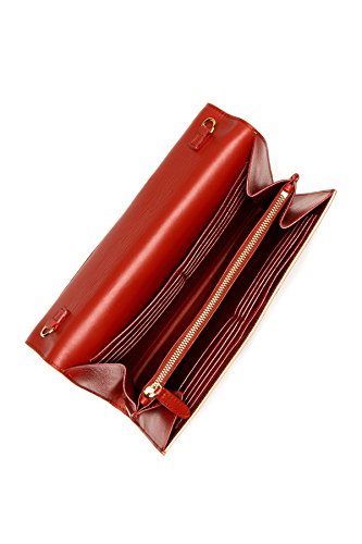 Product Description Detachable drop-in chain accent strap - Foldover flap with push-lock closure - Interior features center zip divider, 2 slip wall pockets, 16 card slots, and mirror and mesh ID slot on flap - Dust bag included - Approx. 6.5" H x 9.25" W x 2" D - Approx. 21" strap drop - Made in Italy 0