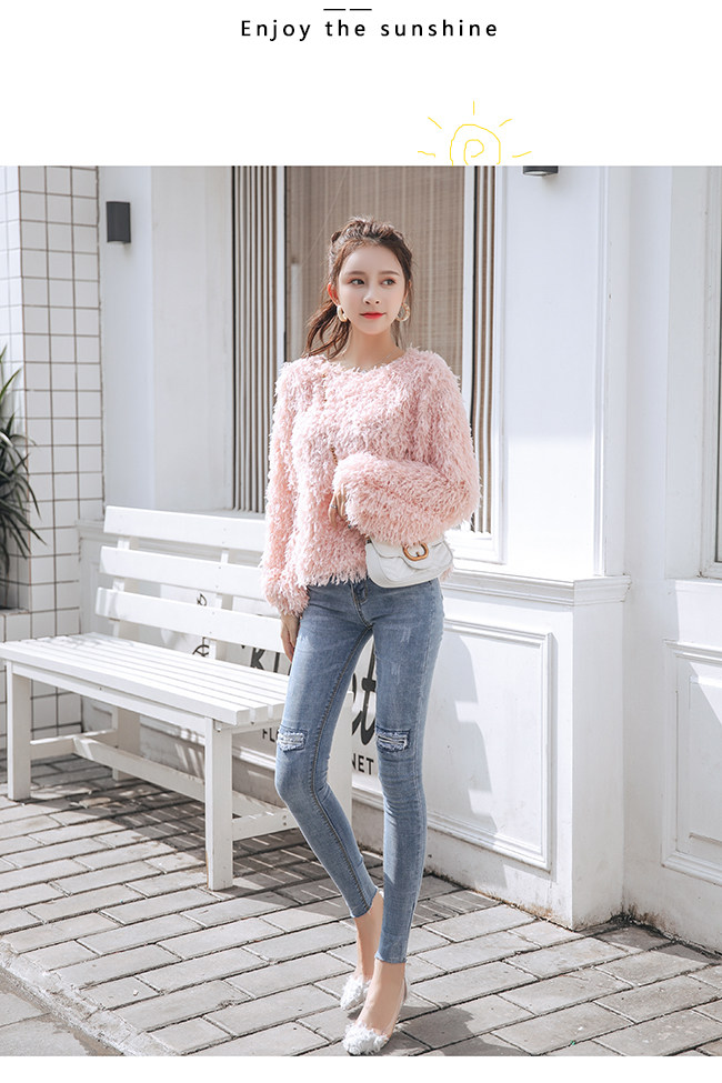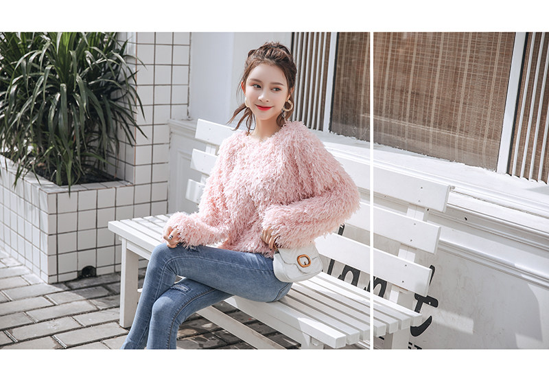 ■一気に華やかムード◎ボアノーカラーブラウス■