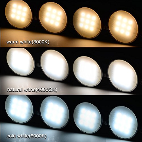 - [SUPPER BRIGHT]: 18 SMD 2835 LEDs, 180lm per each puck light, 4 PCS offer 720lm, CRI 80+, perfectly meets your lighting needs.