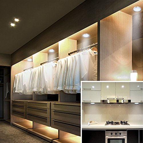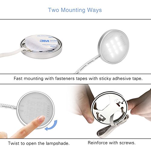 - [EASY INSTALLATION]: Two mounting ways. Comes with sticky adhesive tapes and screws. Total approx 180in cable length, no worries that the cable is short to get to the sockets for power ( It doesn't mean each puck could be 180in apart ). You can add these delicate puck lights to anywhere as desired.