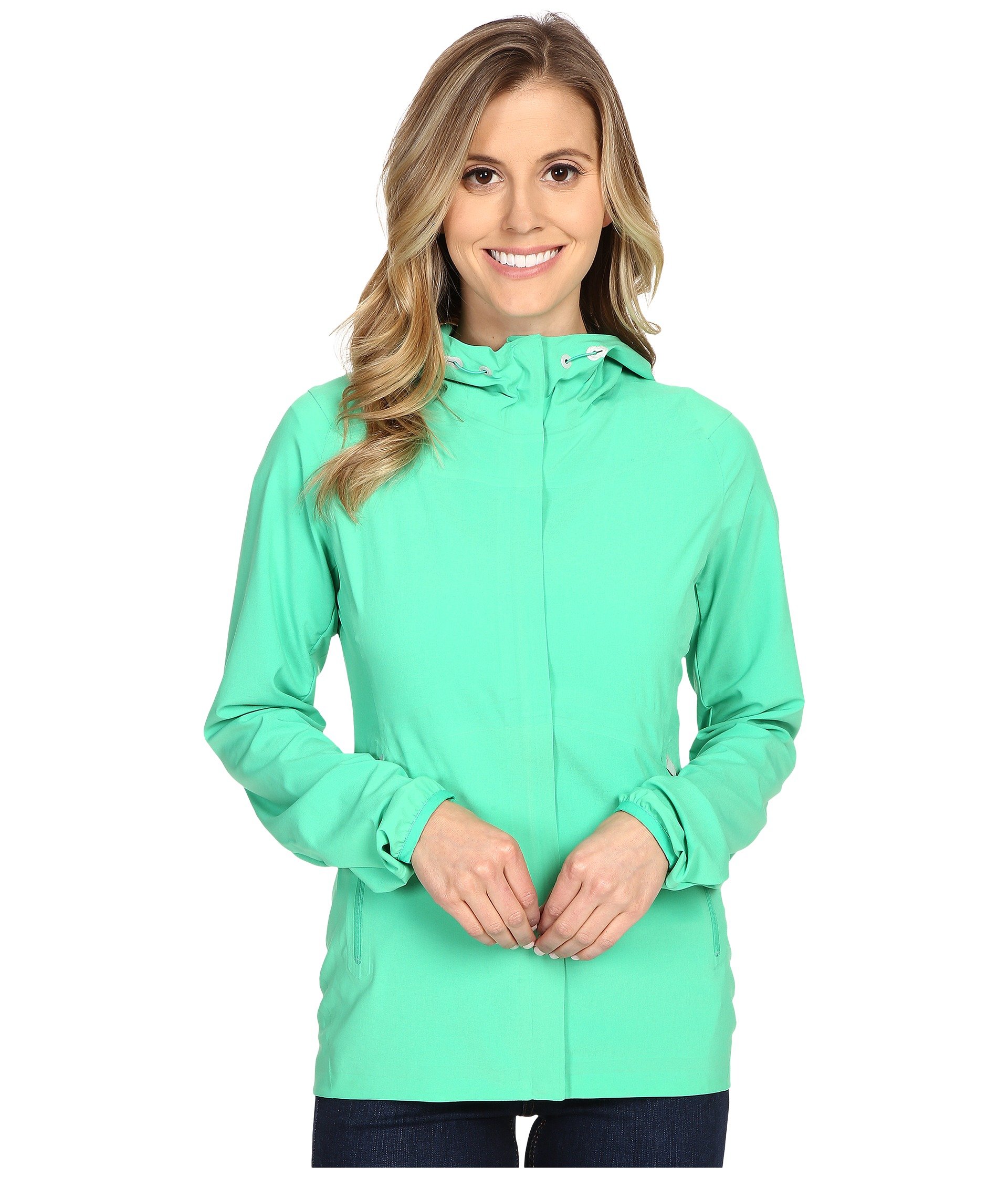 | Product Information SKU: #8632866Please note that this style is either discontinued and/or from a previous season.Sleek, stylish, and ready for adventure!Durable water-repellent finish (DWR) keeps you dry so you can stay out longer.Ventilated side seams.Bonded construction throughout reduces overall weight while increasing durability.Active fit allows for full range of motion.Attached hood with adjustable opening.88% polyester, 12% elastane.Machine wash cold, tumble dry low.Imported.Product measurements were taken using size XS. Please note that measurements may vary by size.Measurements: Length: 25 in |