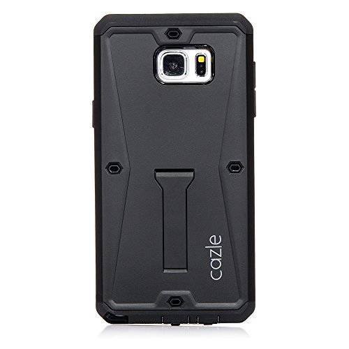 Galaxy Note 5, Tridefense Three-layer Rugged Protective Cover with Built in Screen Protector and Foldable Kickstand for Samsung Galaxy Note 5 By Cazle (Black)