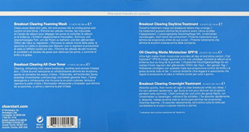 Breakout Clearing Foaming Wash 50ml/1.7 ounce. 1x Breakout Clearing All Over Toner 50ml/1.7 ounce. 1x Blackhead Clearing Pore Control Scrub 15ml/0.5 oz. 1x Oil Clearing Matte Moisturizer SPF 15 15ml/0.5 ounce. 1x Breakout Clearing Overnight Treatment 15ml/0.5 ounce.