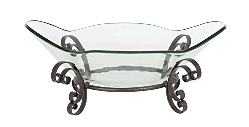 Deco 79 68585 Flower-Shaped Bowl with Iron Lacy Scroll Frame, Clear/Black