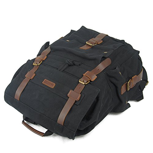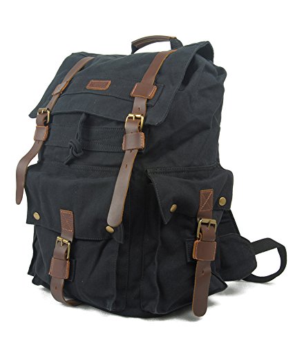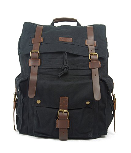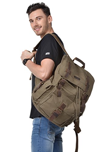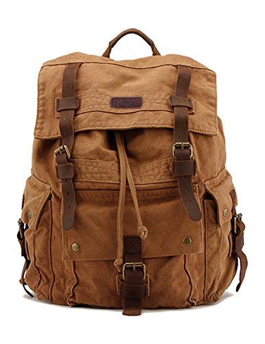 Canvas and leather backpack: vintage design, multiple uses! Are you looking for a backpack that is stylishly designed to suit any situation without compromising on strength and functionality? If so, the kite canvas and leather backpack is the perfect travel backpack for you! This 100% new vintage rucksack combines strong canvas and genuine brown leather materials reminiscent of classic messenger bags. It's perfect as a travel, hiking or school canvas backpack. The main, double buckled flap covers a wide drawstring opening to the interior which features zip pockets and a 15" laptop compartment. The front pocket with a single buckle flap and magnetic closures is great for quick access items while side pockets provide extra room for accessories. Complementing the fantastic design are thick, comfortable and adjustable shoulder straps. Whether you want a travel backpack or as a school backpack to carry a4 magazines, laptop, tablet, etc., this unisex backpack is perfect. If you're looking for a combination of vintage and modern styles with strength and functionality in a retro rucksack.Feature