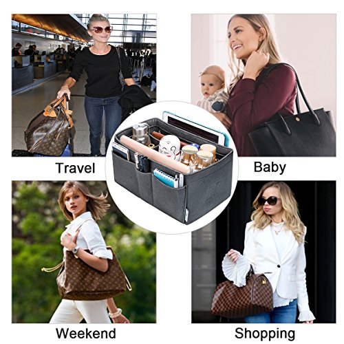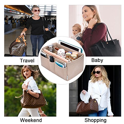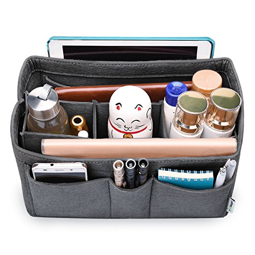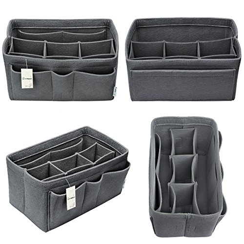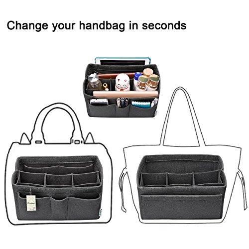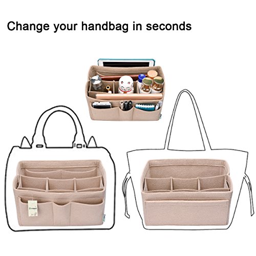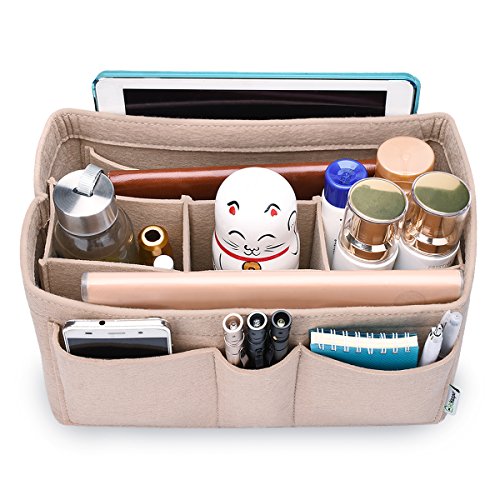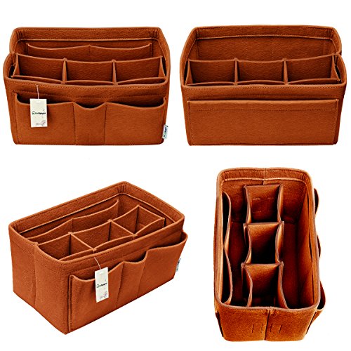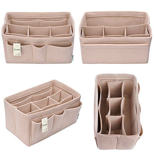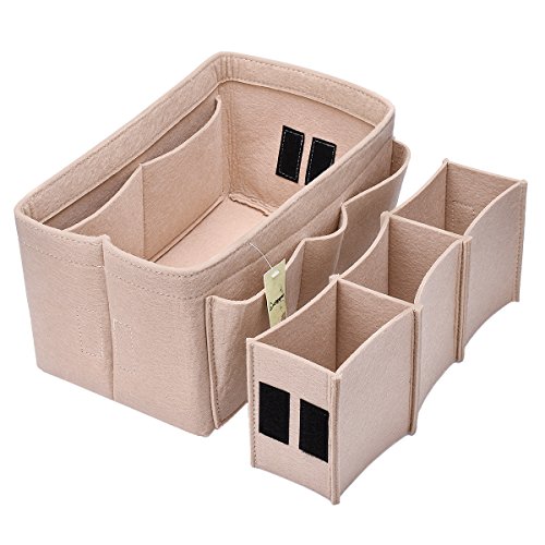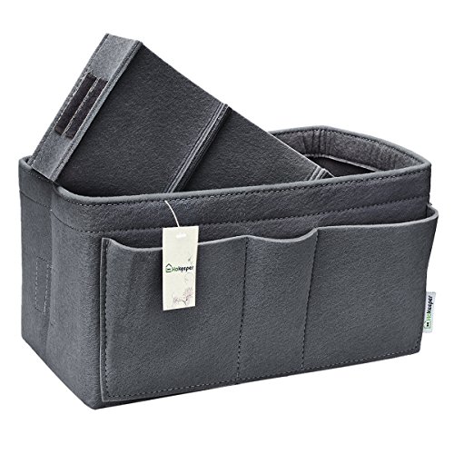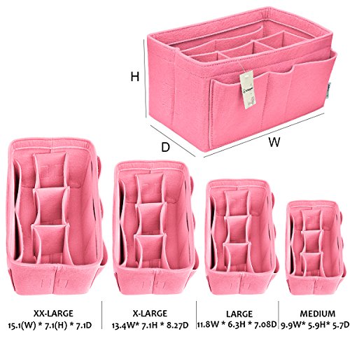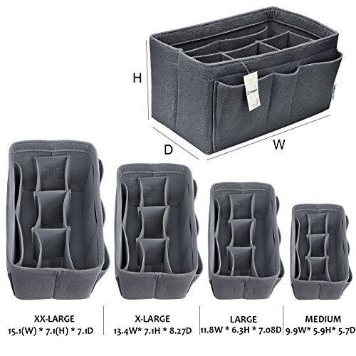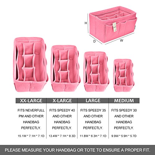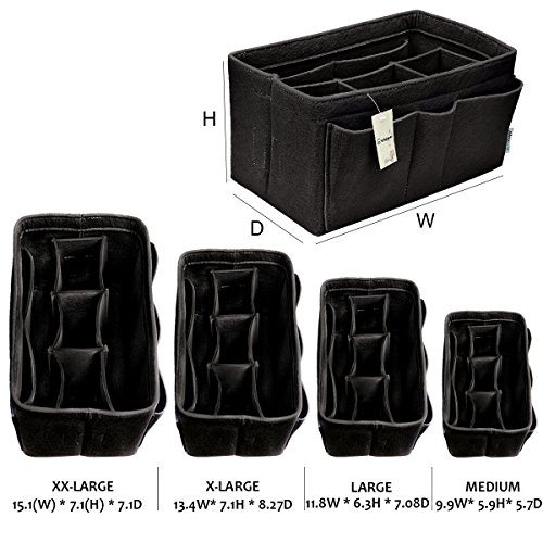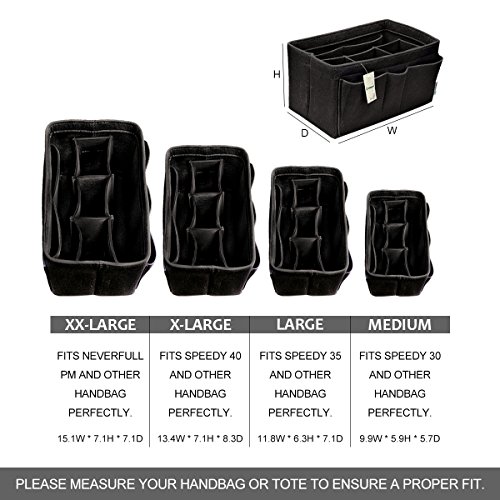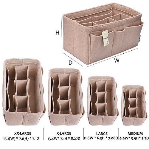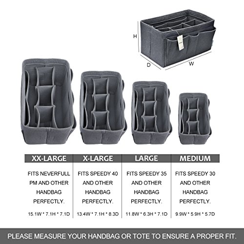 Why choose Hokeeper organizer? 1: Stand on its own - made of thick soft felt fabric,4 exterior pockets, 8 interior pockets, keep your items orderly and well organized 2: Very light weight - less than 15 ounces empty for carrying. 3: Universal fit - various size color options perfect for any brand. 4: Help retrieve items in seconds switch bags a cinch 5: Prevent your designer handbag from sharp objects damage(e.g. pens,keys,etc.) Size Chart Medium-9.9(W) * 5.9(H)* 5.7(D) Inches - Fit speedy 25 Neverfull PM perfectly; Large -11.8(W) * 6.3(H) * 7.08(D) Inches - Fit speedy 30 Neverfull MM perfectly; X-Large - 13.4(W) * 7.1(H) * 8.27(D) Inches - Fit speedy 35 Neverfull GM perfectly. 2X-Large - 15.1(W) * 7.1(H) * 7.1(D) Inches - Fit speedy 40 perfectly.