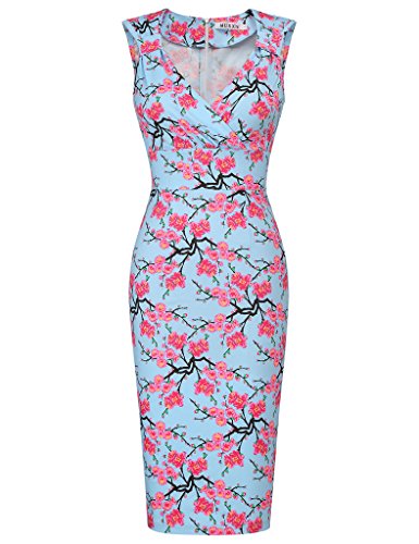 MUXXN Women's Vintage 1960s Style V Neck Bodycon Cocktail Evening Dress
