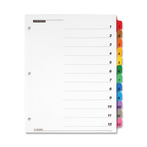 Cardinal OneStep Index System, 12-Tab, Numbered, Multi-Color, 1 Set (61218)