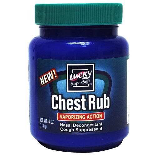 Studio : Delta Brands Inc Publisher : Delta Brands Inc Binding : Health and Beauty Product Description Lucky Vaporizing Chest Rub 1% Menthol. Vaporizing Action. Nasal decongestant and cough suppressant. Net wt 4 oz jars. Buy More then one and Save on Shipping. 0